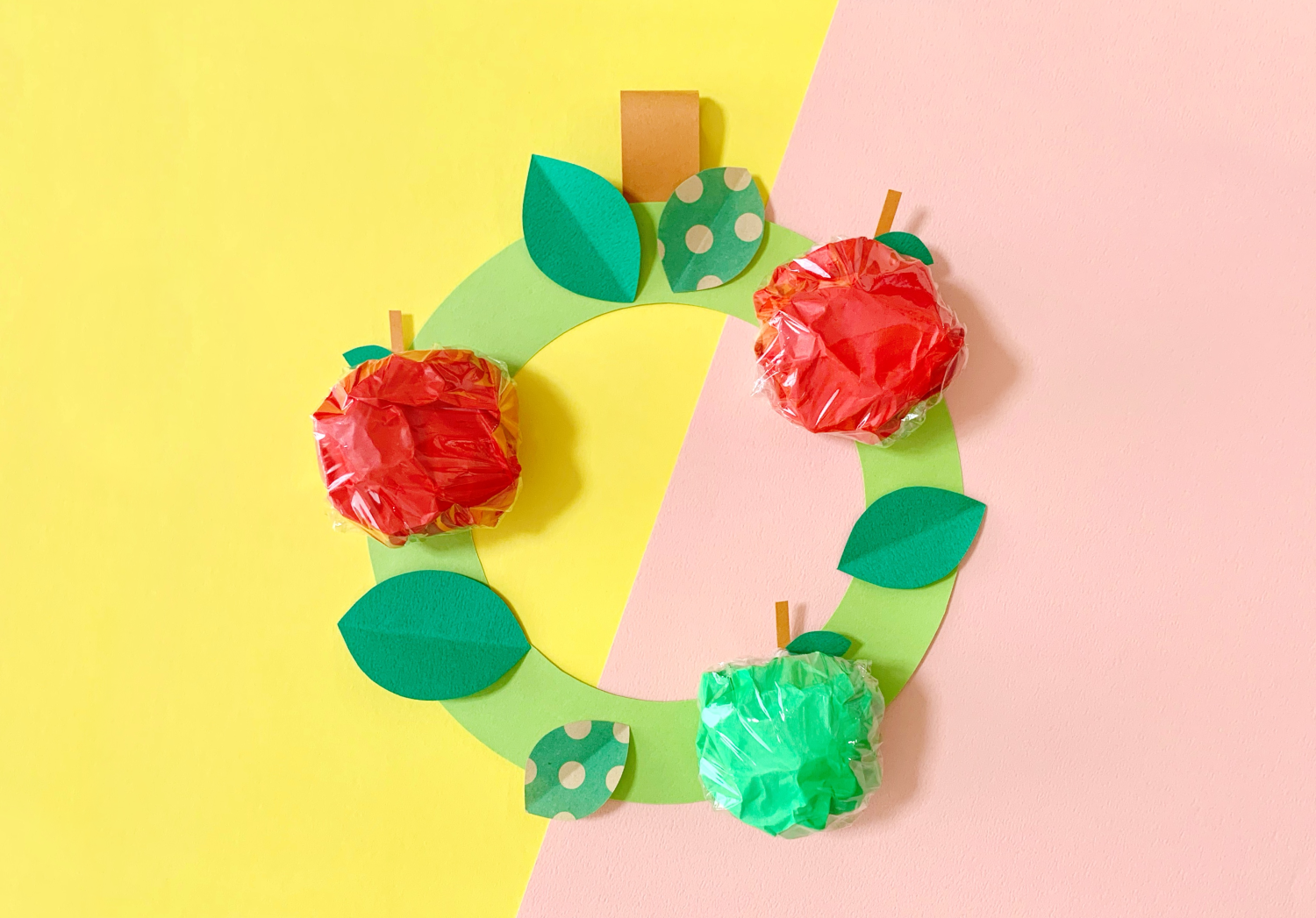 製作アイデアー立体リンゴのリース保育士ワーカ。