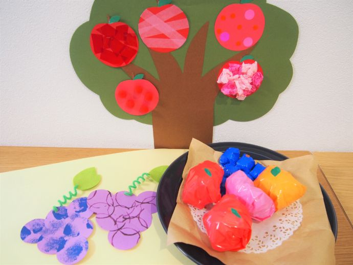 子どもたちの果物アートで秋を彩る 9月の製作紹介 - くじら保育園 都島北園。