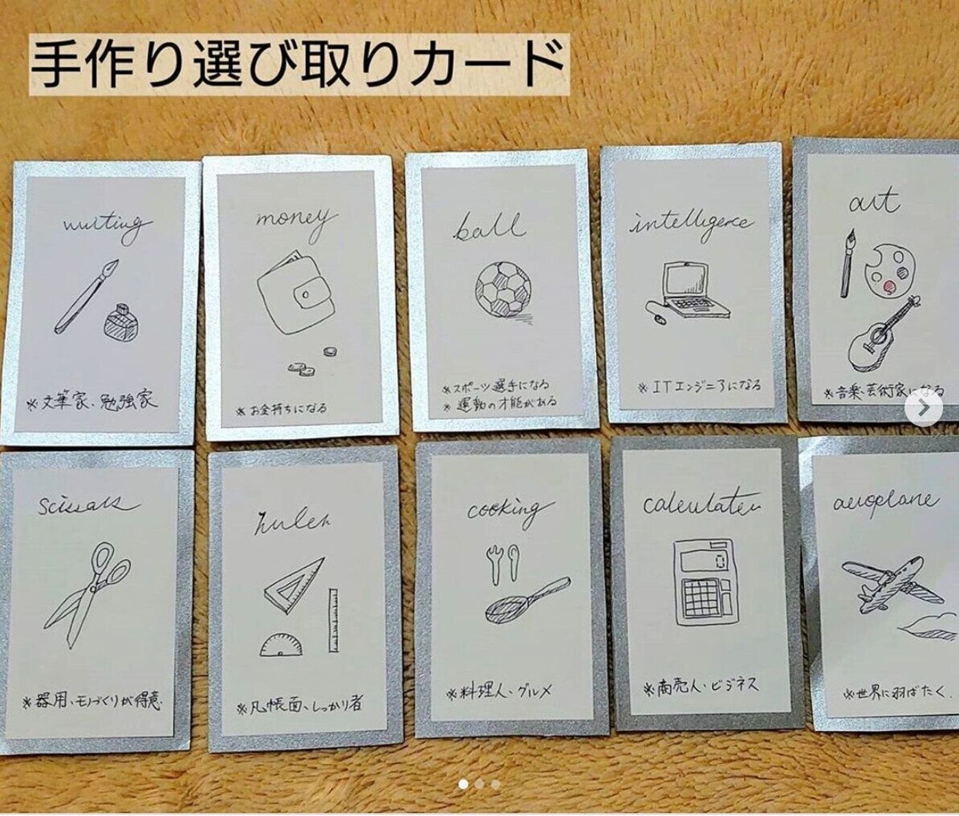 Himari&Ibuki&Emiri選び取りカード✨ . えみりさんはコレだ!と決められず🎹、🌏、❤️とたくさん持ってきてくれた‼︎ . 将来はどんな大人になるのかな ⁇ .生後12ヶ月 1歳誕生日 3きょうだい選び取りカード選び取りカード手作り8月産まれ 女の子 第3。