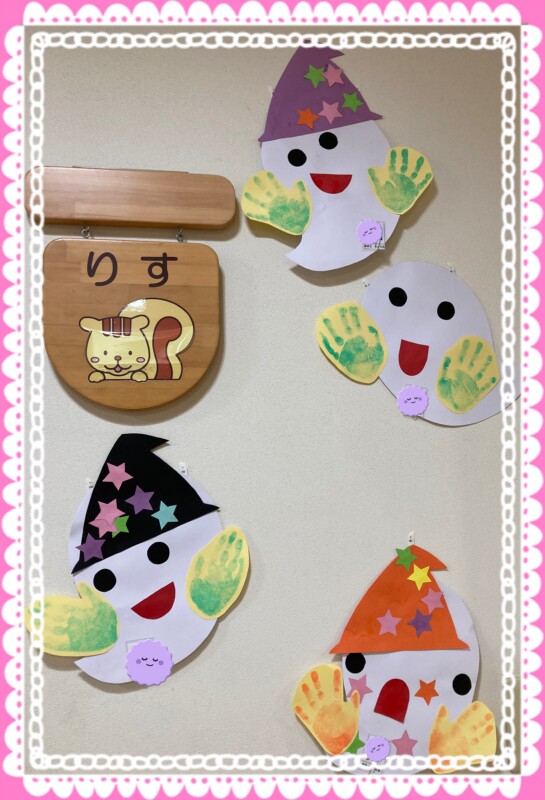 あけの保育園 ハロウィンの壁面飾り 1歳児・りす組。