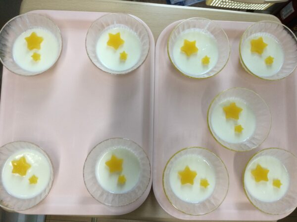 おやつ 七夕ゼリー門真市立東小学校の隣リールキッズ門真保育園。