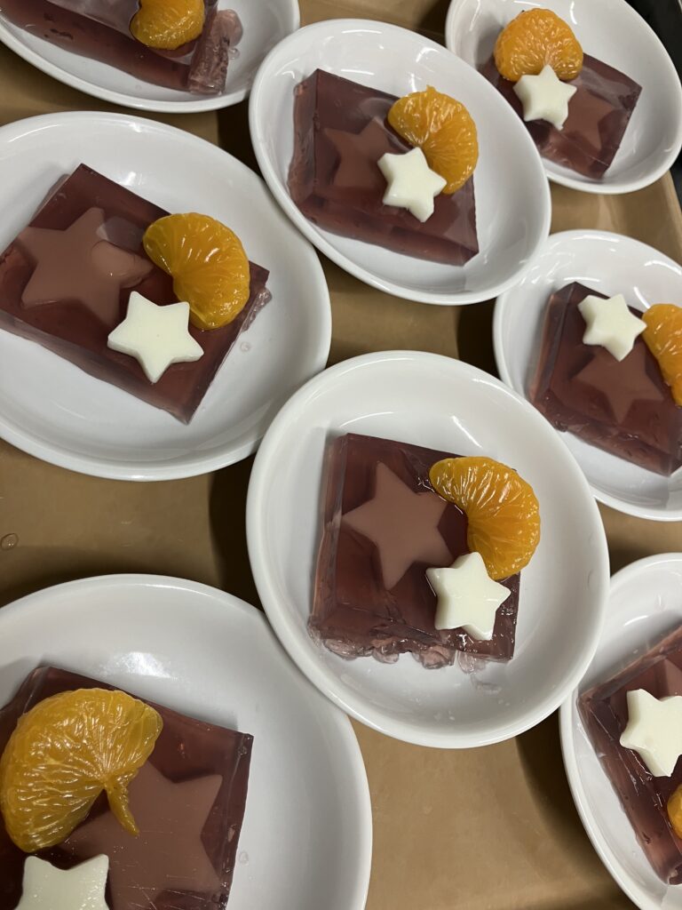 七夕給食🎋 昨日の七夕給食のご紹介をします♪ お昼は星⭐️いっぱいの七夕カレーでした。 人参、オクラ、チーズ、ポテト⭐️それぞれお好みの星をスプーンですくって食べました❤️ おやつは牛乳、みかん、白ブドウの3色のゼリーでした。 中に隠れている星ゼリーを。