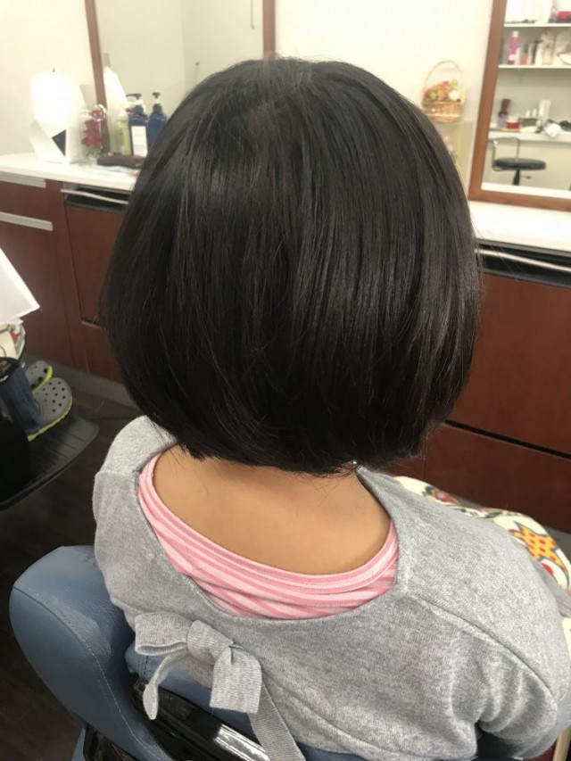 ショートボブ。yiisイースつくば市花畑の美容室 髪質改善 インカラミ 丁寧なカット キッズカット。