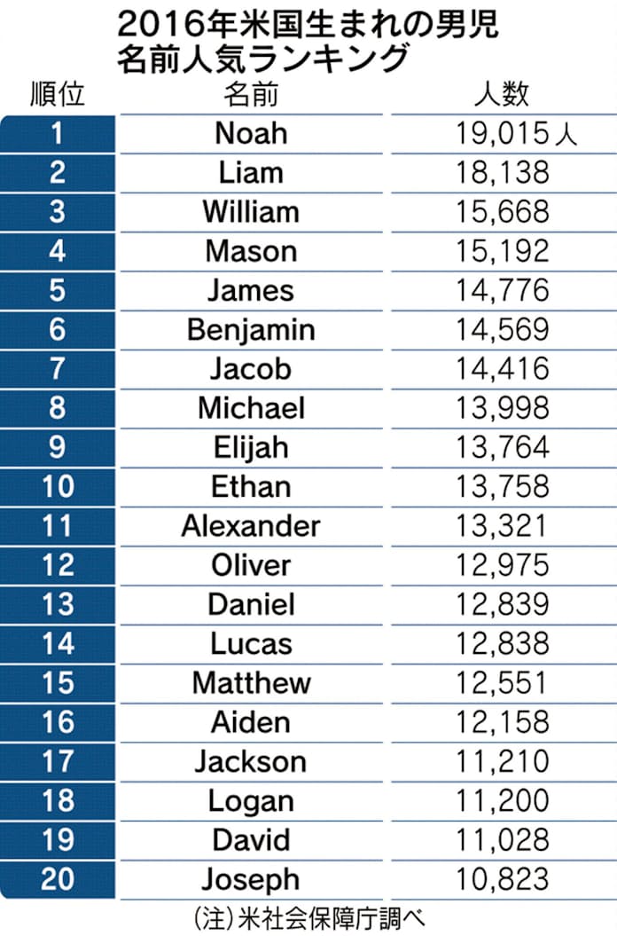 米男児名、「ドナルド」は過去最低 人気は「ノア」に - 日本経済新聞。