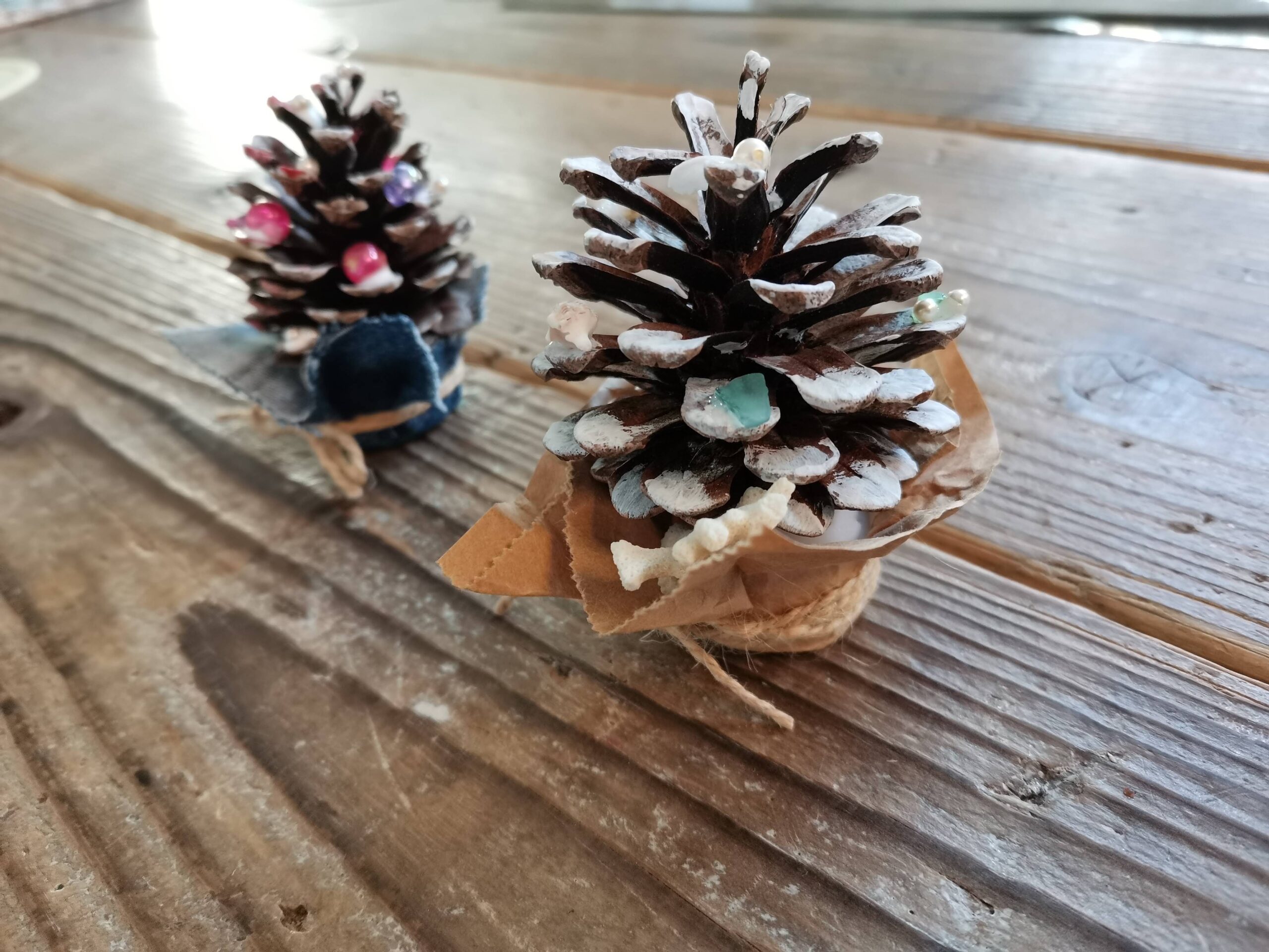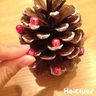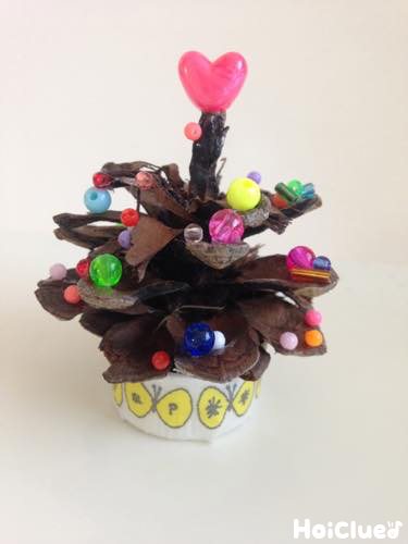 ビーズがキラキラ!まつぼっくりでクリスマスツリーほいくびより。
