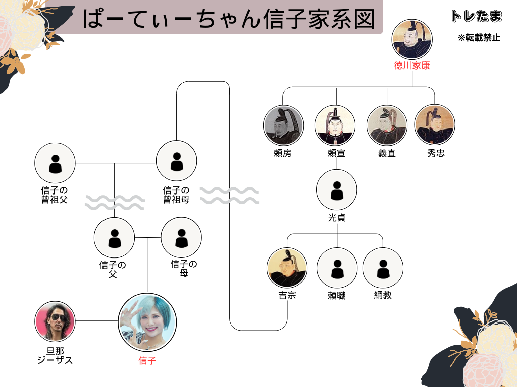 画像 ぱーてぃーちゃん信子の家系図が驚愕!徳川家康の末裔!旦那の職業・馴れ初めは?トレたま。