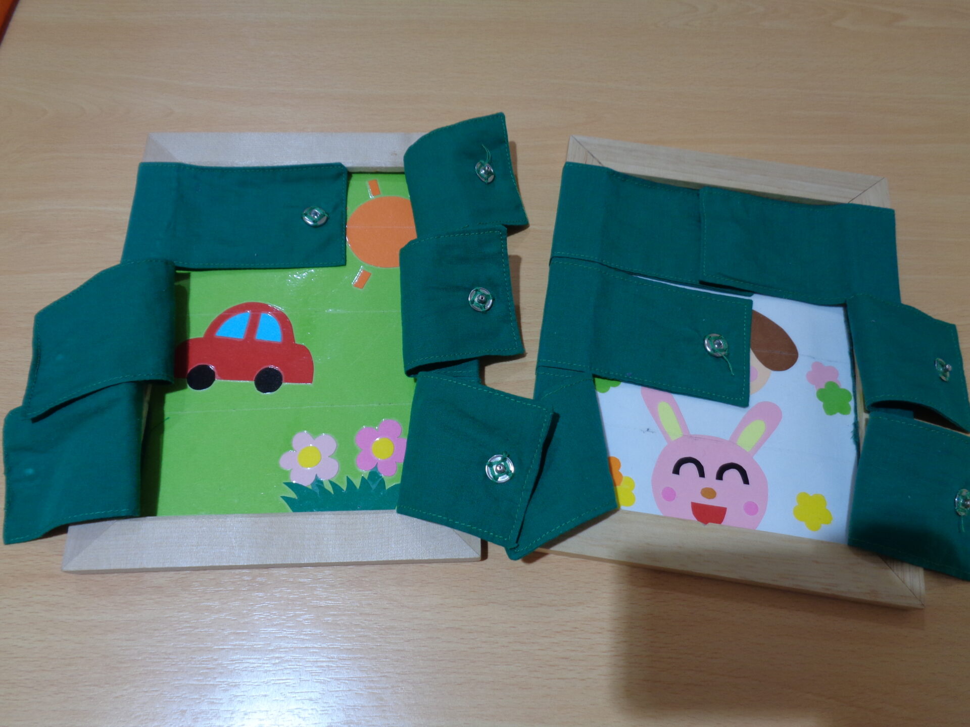 ボタン・ファスナー 手作りおもちゃ 1・2歳児- 伊丹くじら小規模保育園。