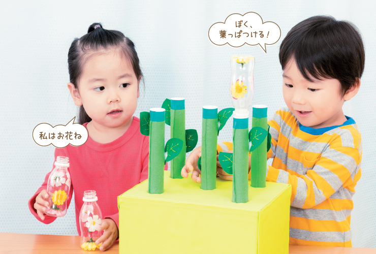 春の手作りおもちゃ「くるりんフラワー」世界文化ワンダ。