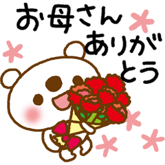 お母さん毎日ありがとう 母の日無料ラインスタンプ「母の日 カーネーションとプレゼント 熊」無料ラインスタンプ。