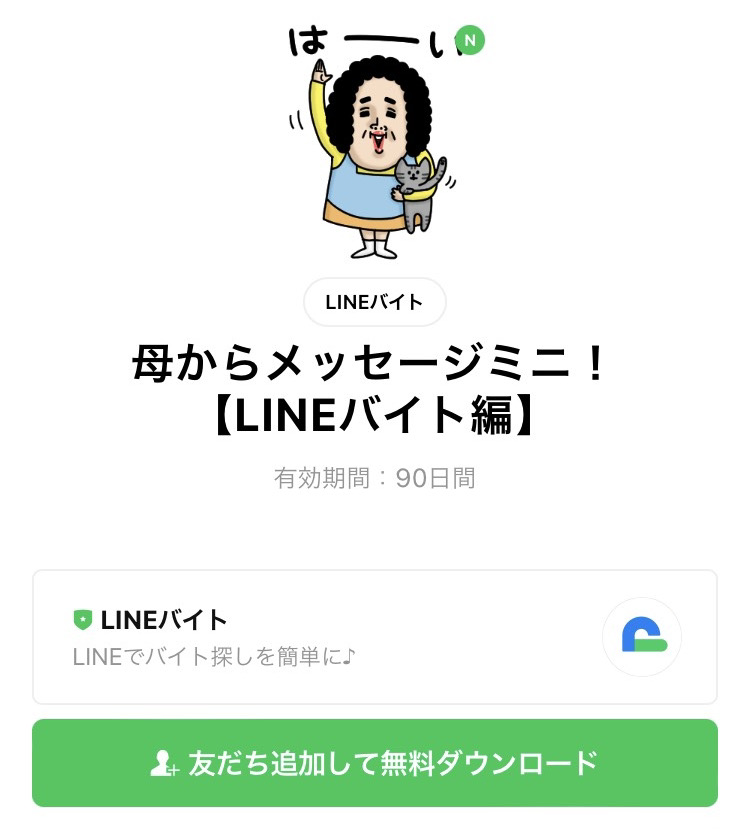 LINE無料スタンプ「母からメッセージ ミニ!」。