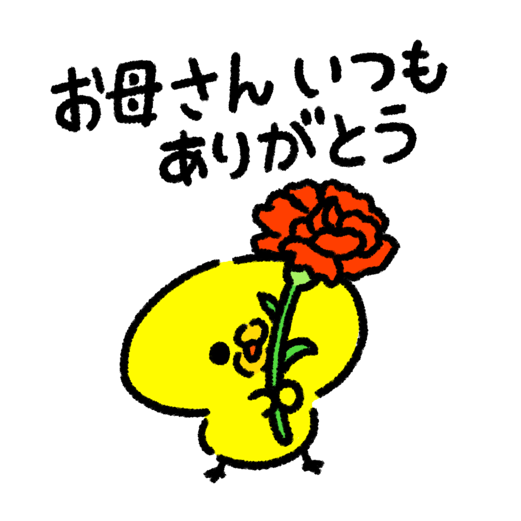母の日にカーネーションをプレゼントするひよこのイラストゆるくてかわいい無料イラスト・アイコン素材屋「ぴよたそ」。