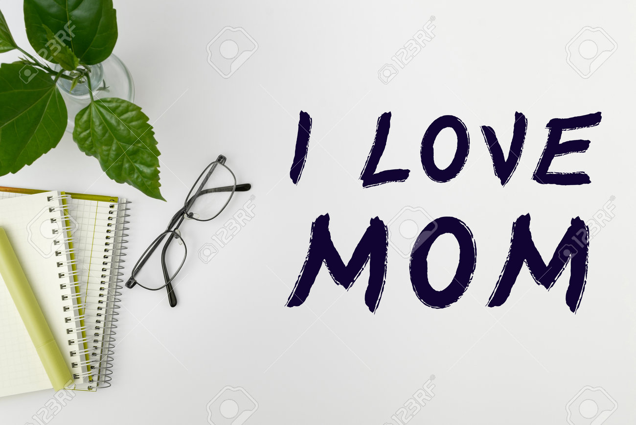 手書きサイン私はお母さんが大好きです。私の母の愛情愛の幸せについての良い気持ちを意味するコンセプトの写真素材・画像素材 Image 197082842。