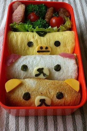 サンドイッチのお弁当幼稚園のおべんとう*ssmamaのキャラ弁。
