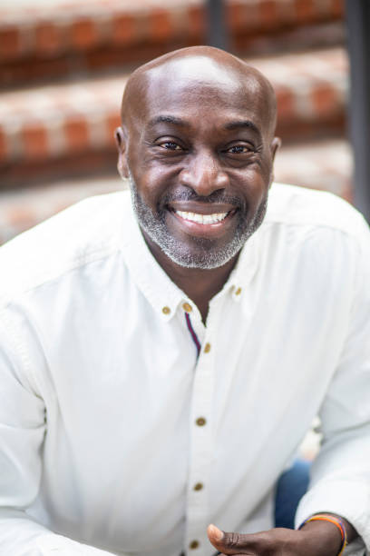 成熟したシニア黒人男性の肖像画座って笑って - ヘッドショットのストックフォトや画像を多数ご用意 - ヘッドショット, 俳優, 内階段 - iStock。