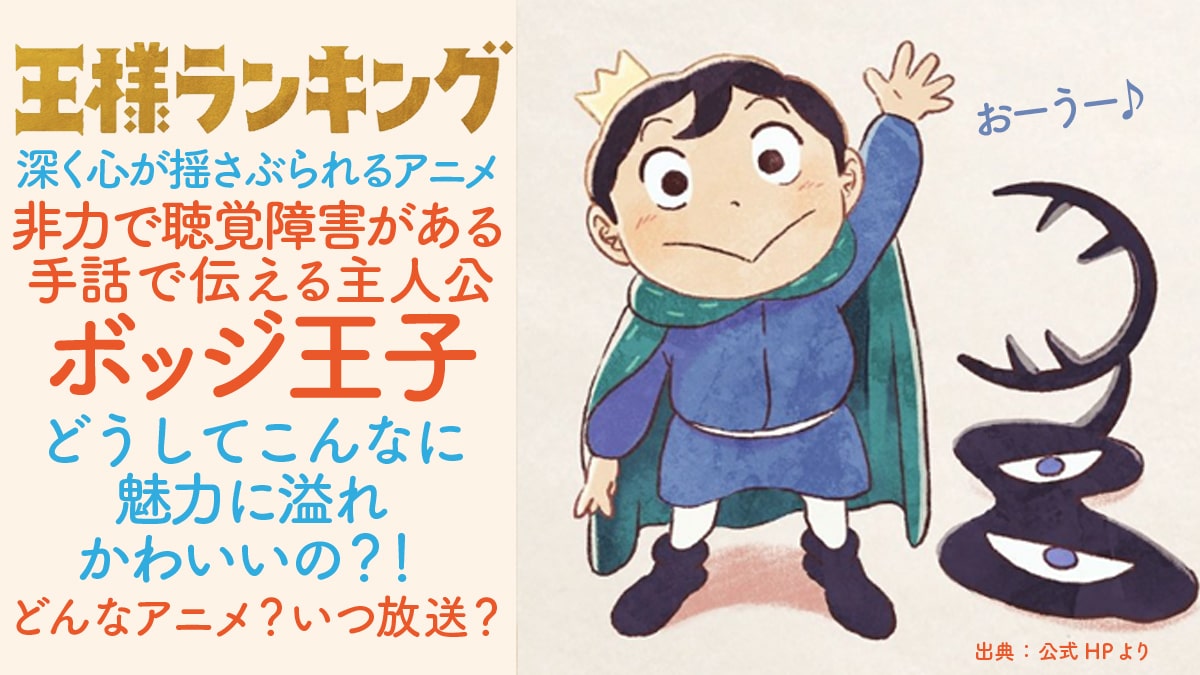 ボッジ CV:日向未南 。ボッス王国の第一王子。耳が聞こえず、短剣も振れないほど非力だが、夢は世界一立派な王様になること。 -アニメ「王様ランキング」ティザーPV公開!ボッジ役を日向未南、カゲ役は村瀬歩画像・動画ギャラリー 4 12- コミックナタリ。