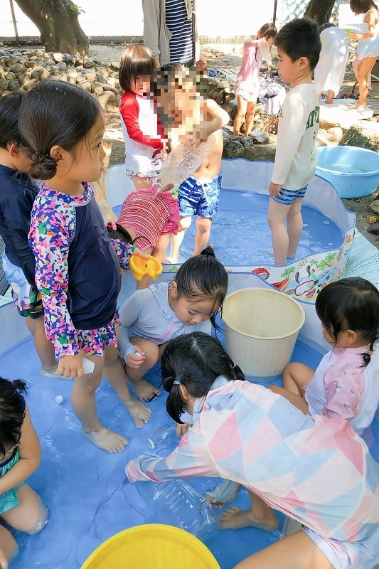 幼稚園児のみんな、元気いっぱい水遊び💦 普段はできない経験を、2日間でいっぱい楽しみます!お父さんお母さんがいなくても、自分で全部できるようにみんな頑張りました🏕️ 大きくなっても覚えてて、また遊びに来てくれるといいなぁ☺️松原キャンプ場湖水浴カヌ。