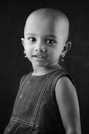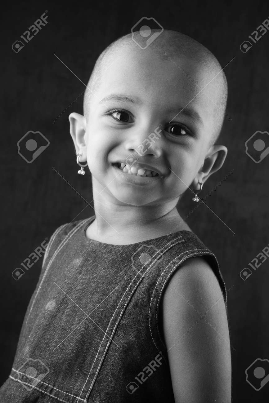 坊主頭のインドの女の子子供の黒と白の肖像画の写真素材・画像素材 Image 42262135。
