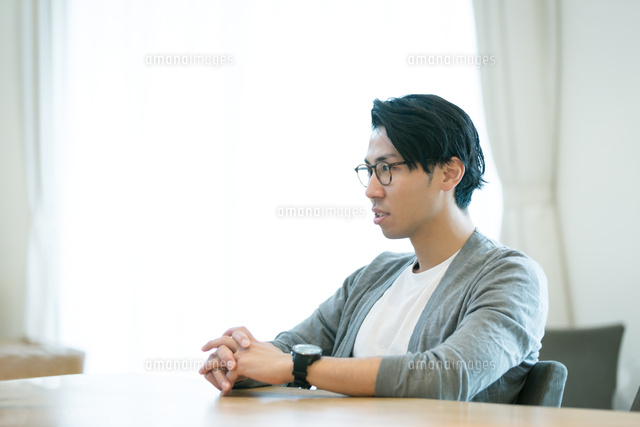 テーブルに座る男性 10736003242 の写真・イラスト素材アマナイメージズ。