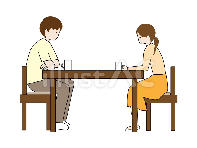 テーブルを挟んで向き合って座る男女 相談イラスト - No: 22195096無料イラスト・フリー素材なら「イラストAC」。