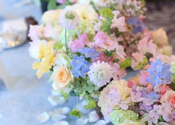 ブルー系メインテーブル装花10選!青が好きな方必見♡ 今週のスタスナ omotte magazine fromANNIVERSAIRE記念日にまつわるマガジン。
