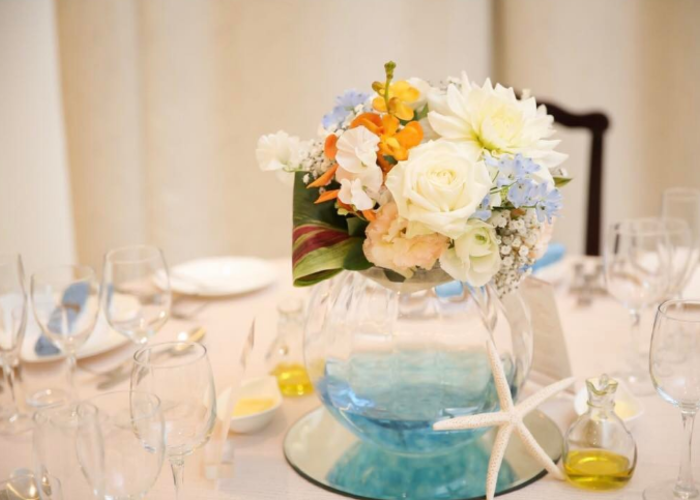 ウエディングパーティーのテーブル装飾例リゾートウエディング専門で創業20年の ファーストウエディング。