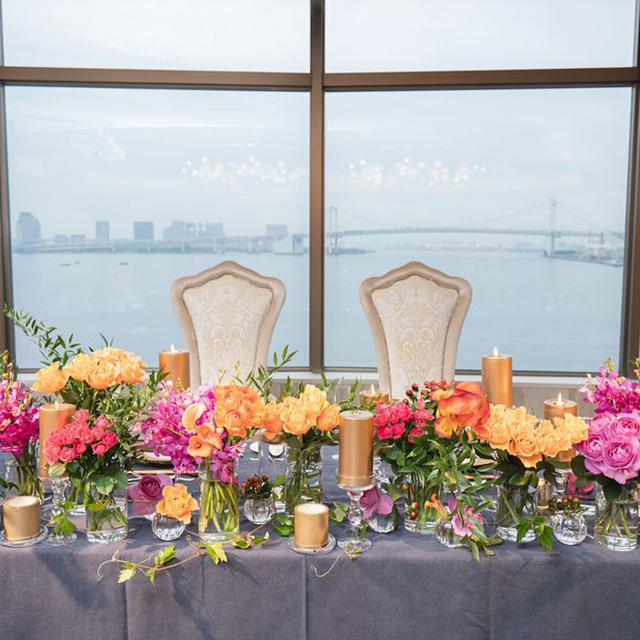 カラフルなメインテーブル装花 結婚式 会場装花トキハナ。