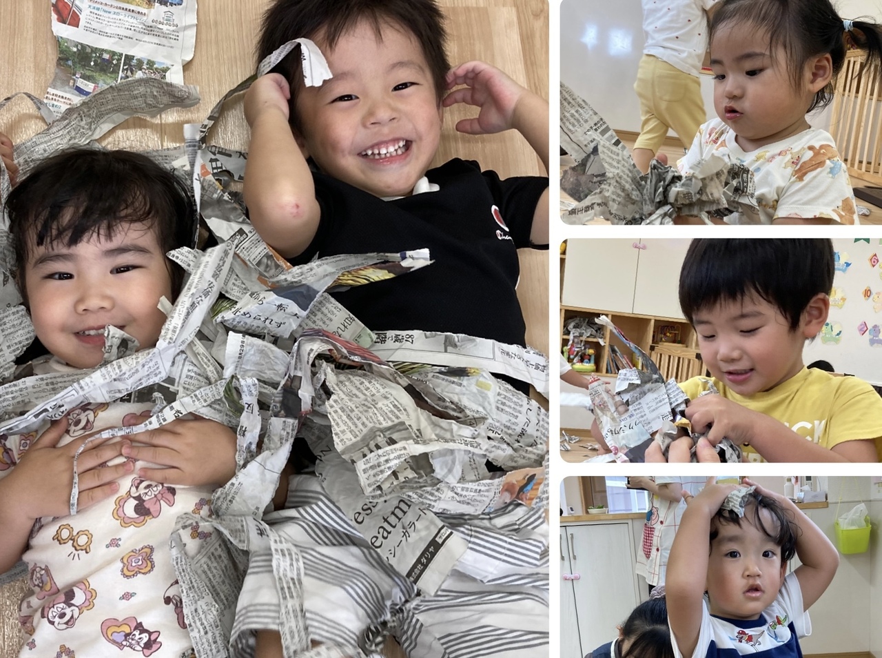 藤枝郡園~新聞紙遊び~保育所きぼう 小規模認可保育所 焼津 静岡 藤枝 島田 掛川。