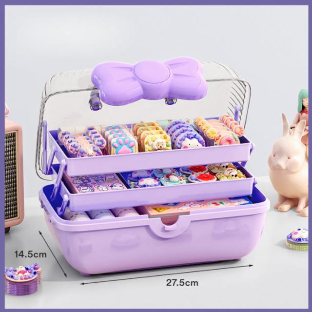 アクセサリー収納ボックス 大容量 3段 子供用 キッズ 女の子 リボン ヘアアクセサリー 小物入れ 髪飾り ヘアピン ヘアゴム 収納ケース たっぷり。