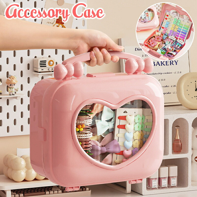 アクセサリー収納ボックス 大容量 3段 子供用 キッズ 女の子 リボン ヘアアクセサリー 小物入れ 髪飾り ヘアピン ヘアゴム 収納ケース たっぷりハンドル付き 持ち運び 整理 宝石箱 バスケット 子ども 女児 ギフト プレゼント 贈り物 ヘアアクセサリー 収納 持ち運びの。