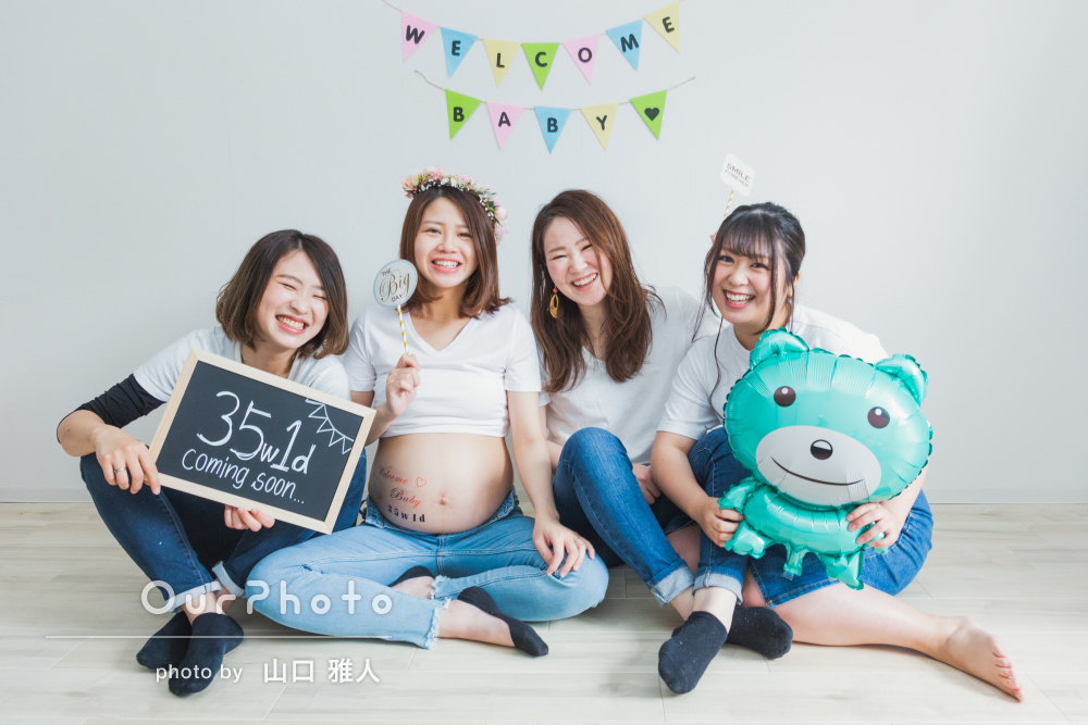 マタニティフォトを友達と撮ろう!アイデアやおすすめポーズを紹介こども写真館スタジオアリス写真スタジオ・フォトスタジオ。
