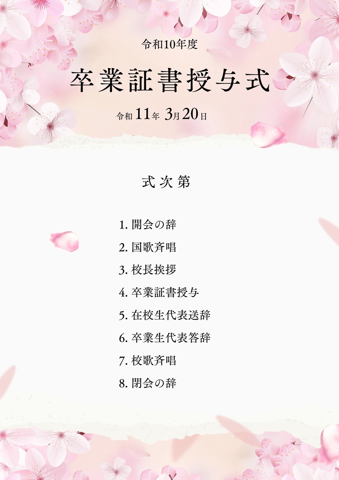 テンプレート「卒園式の式次第」幼稚園・保育園の先生が読むパステルIT新聞。
