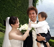 コモ湖の「Villa del Balbianello ヴィラ・デル・バルビアネッロ 」で撮影中。男が仕切る結婚式。