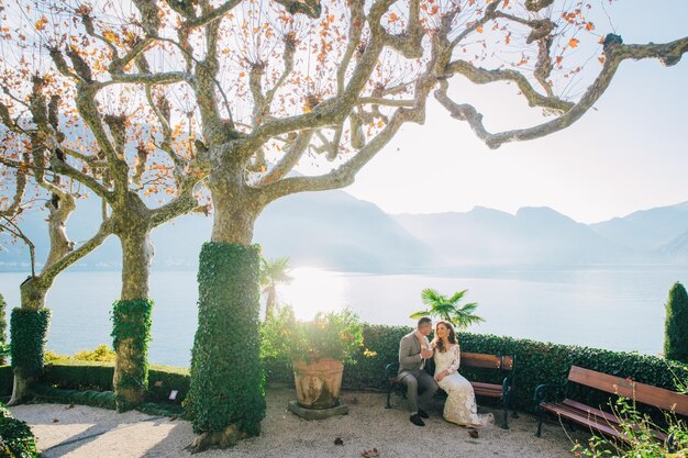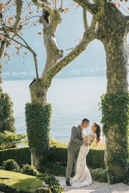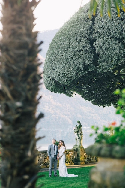 バルビアネッロ邸の結婚式の写真撮影美しいカップルの新郎新婦Premium写真。
