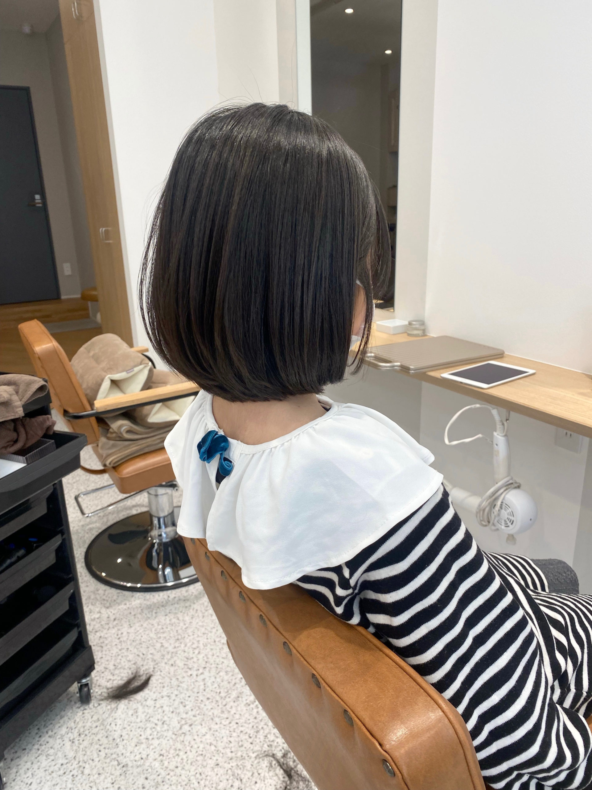 小学生 の女の子をばっさりカット ♡ ロングをショートボブに! オトナ女子に変身😊 遠くからありがとうございます!orougeamiドライカット_natsumiStyleaujuaソムリエ姫路市飾磨区ドライカットヘッドスパ後ろ髪美人ヘアカラーキッズカット_。