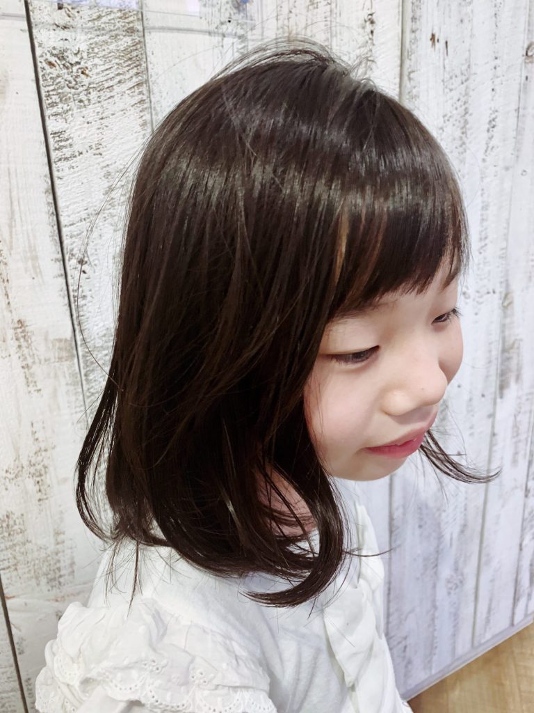 キッズカット☆オン眉前髪が可愛い内巻きボブ MediumTHE -HAIR MAKE SHARE。