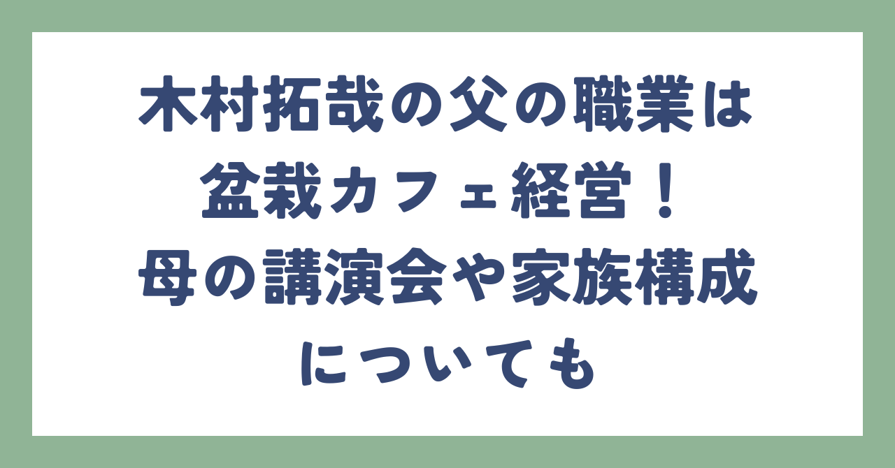 注目 木村秀夫 木村拓哉の父親 はどんな人?盆栽カフェを経営!? - 総合教育研究所。