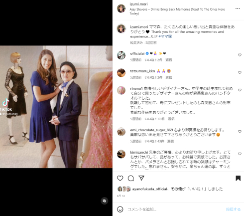 記事全文 森泉 祖母・森英恵さん追悼 思い出の写真とともに「たくさんの楽しい思い出と貴重な体験をありがとう」 - スポニチ SponichiAnnex 芸能。