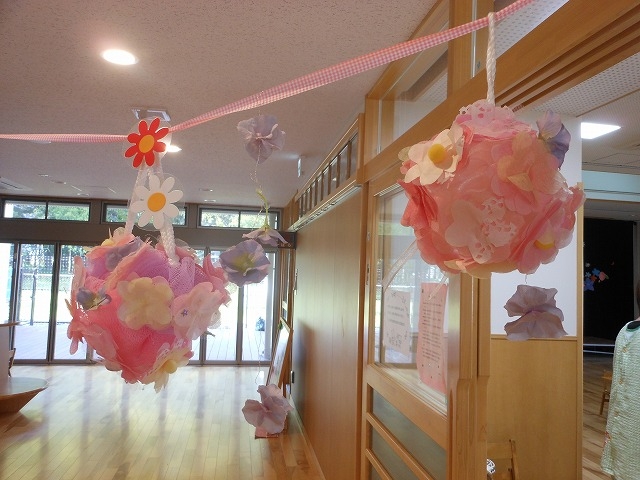 卒園式飾り付け 保育雑誌PriPri掲載のフラワーカーテン入り口飾りを早回しで飾ってみた。