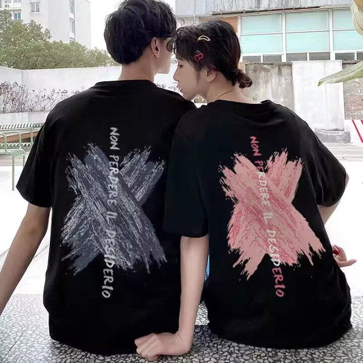 楽天市場 ペアルック tシャツ 英語字 お揃い服 Tシャツ カップルお揃い カップル ペアtシャツ 黒 白 大きいサイズ オーバーサイズ おしゃれメンズ 半袖 大きいサイズ 5XL 可愛い カップルお揃い オシャレ コーデ tシャツ トップス 夏服 記念日 プレゼント 2枚送料無料。