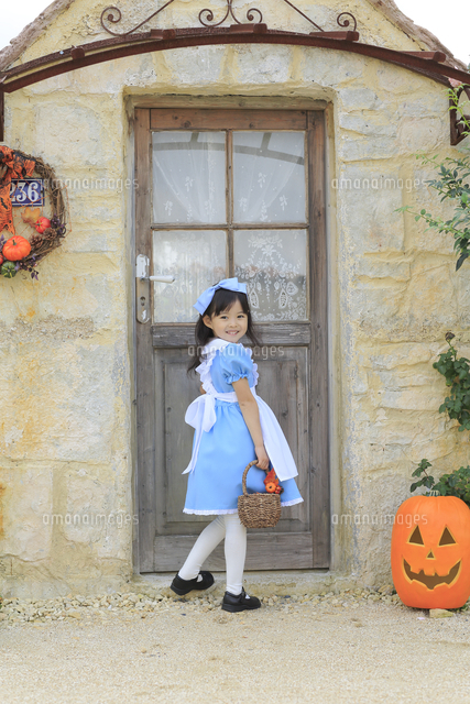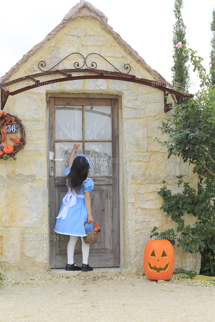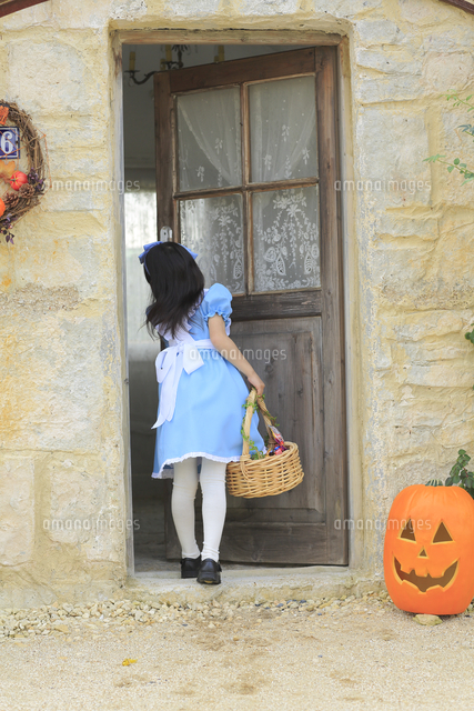 ハロウィンの仮装をして家を訪ねる女の子 11038016407 の写真・イラスト素材アマナイメージズ。