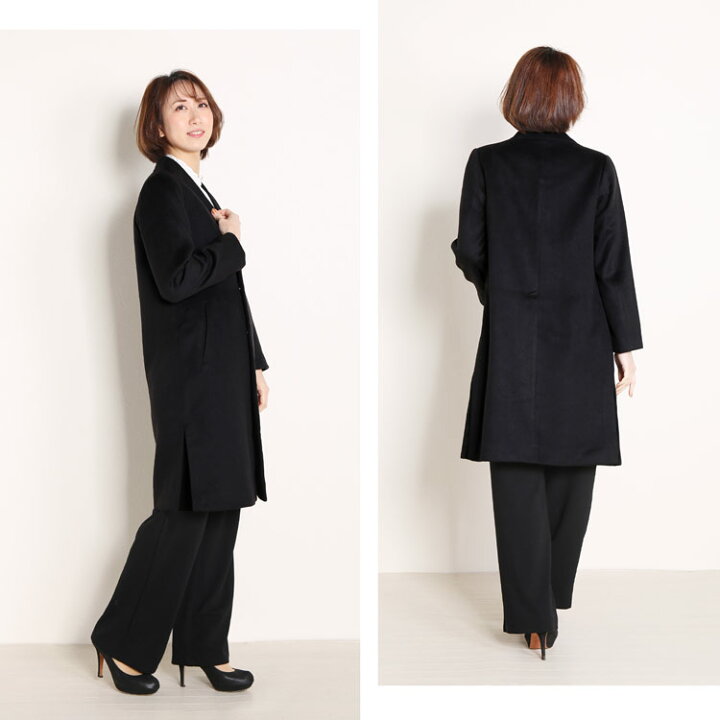 ノーカラーコート レディース 卒業式 卒園式 入学式 Vネック ロング丈 ロングコート アウター コート 母 おしゃれ シンプル デザインメンズライク 秋 冬 ノーカラー 冠婚葬祭 フォーマル 秋 冬 春 あたたかい ギフト プレゼント 6F08000264r三京商会 sankyo。