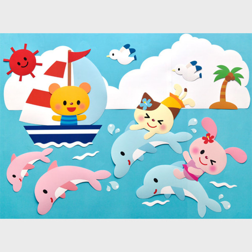 ☆壁面飾り 標準サイズ横80cm※サイズ変更可能 「イルカと遊ぼう!」 7月 8月 夏 海 幼稚園 保育園 学校☆ 切り絵 壁面飾り工房 通販3978895Creema クリーマ。