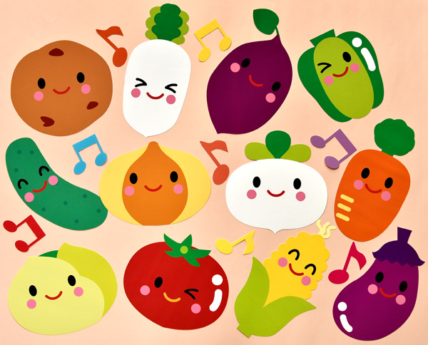 壁面飾り工房本店 壁面装飾・パネルシアター・ペープサート・型紙・知育・保育・介護商品の販売☆壁面飾り工房横70cm 「野菜とおどろう!」春 夏 秋 冬 幼稚園 保育園 学校 病院 施設 知育 壁面装飾 型紙 製作☆。