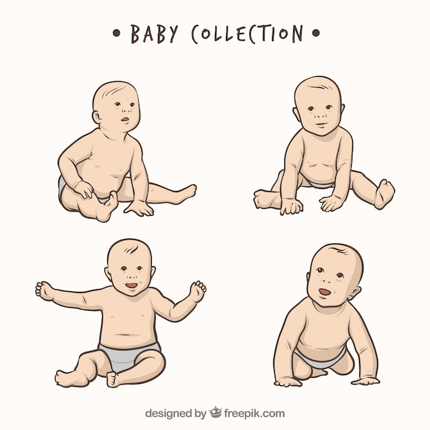 手書き風、乳児赤ちゃんポーズセット。べた塗りトーンのイラスト素材59291109- PIXTA。
