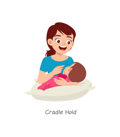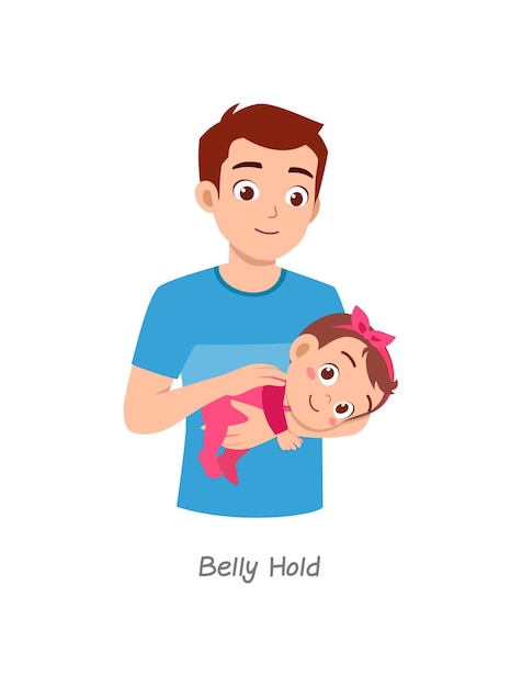 椅子ホールドという名前のポーズで赤ちゃんを抱いている父Premiumベクトル素材。