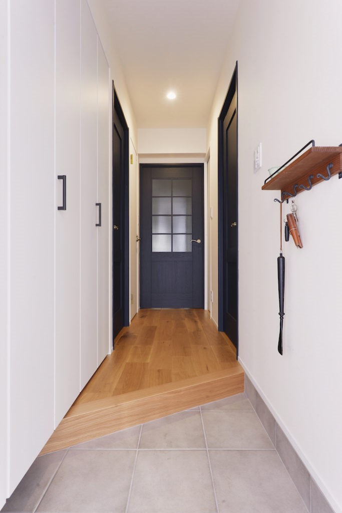 明るく広々とした玄関 家族全員に自分の空間を!家族の気配を感じながら、プライベートを楽しむマンションリノベーション- 玄関 事例SUVACO スバコ。