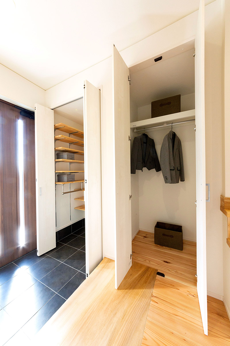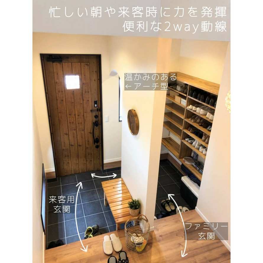 家族とゲスト用に分けたことで、玄関を常にスッキリと くふうイエタテ。