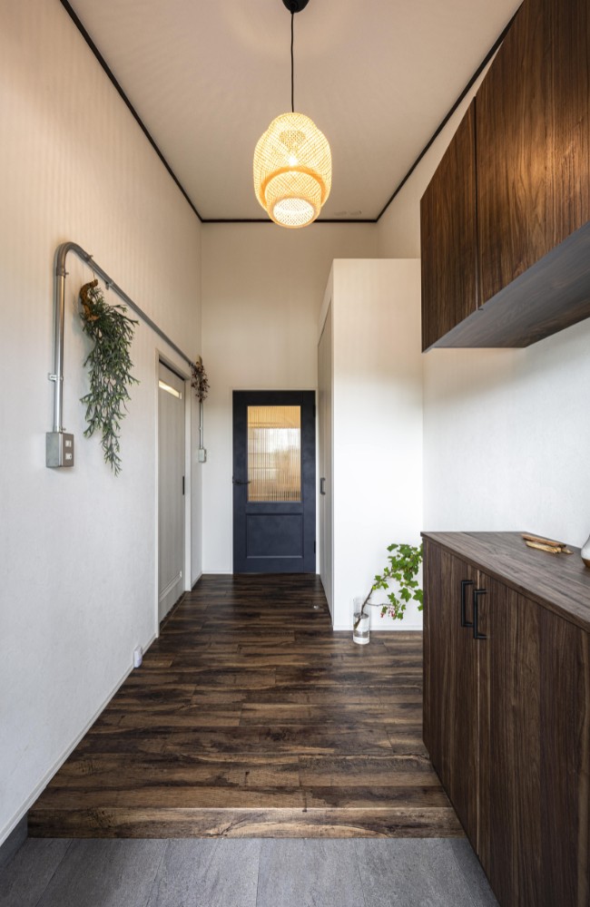 コントラストによりシックで高級感がある玄関 - 事例写真「家族が繋がる隠れ家のある家」注文住宅のハウスネットギャラリ。