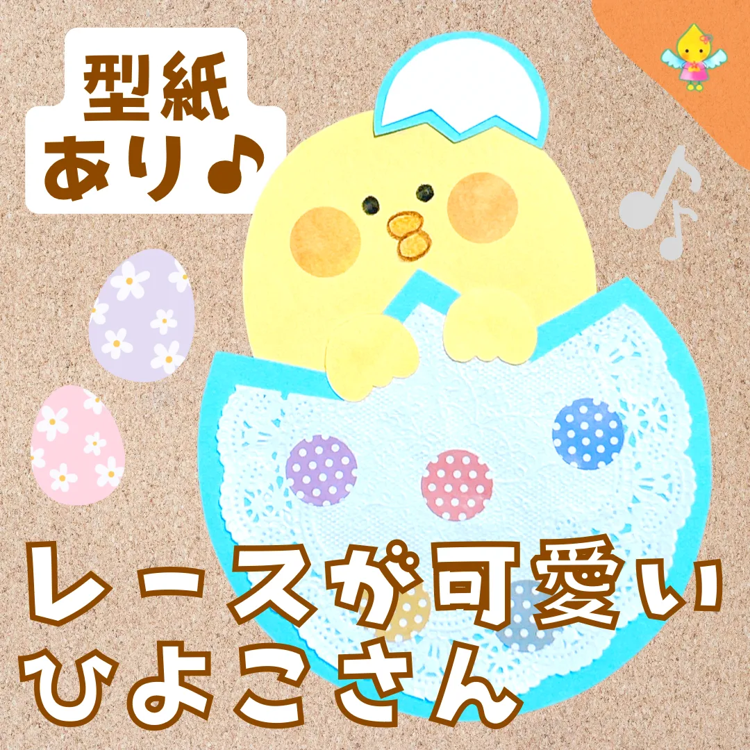 hoiku_omamori 製作型紙はハイライトを見てね🥰 保存と一緒に『いいね♡』もお願いします😆レースが可愛いひよこさん🐣可愛いひよこ さんの製作。レースペーパーを、卵の殻に見立てました♪ひょっこり顔をのぞかせてね!準備するもの・画用紙 ・レースペーパー。