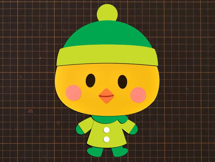 無料ダウンロード型紙で「ひよこ 冬服バージョン」の壁面飾りを作ってみた!保育 介護施設 壁面装飾 製作 冬 12月 1月 2月 3月 動物壁面飾り型紙工房。